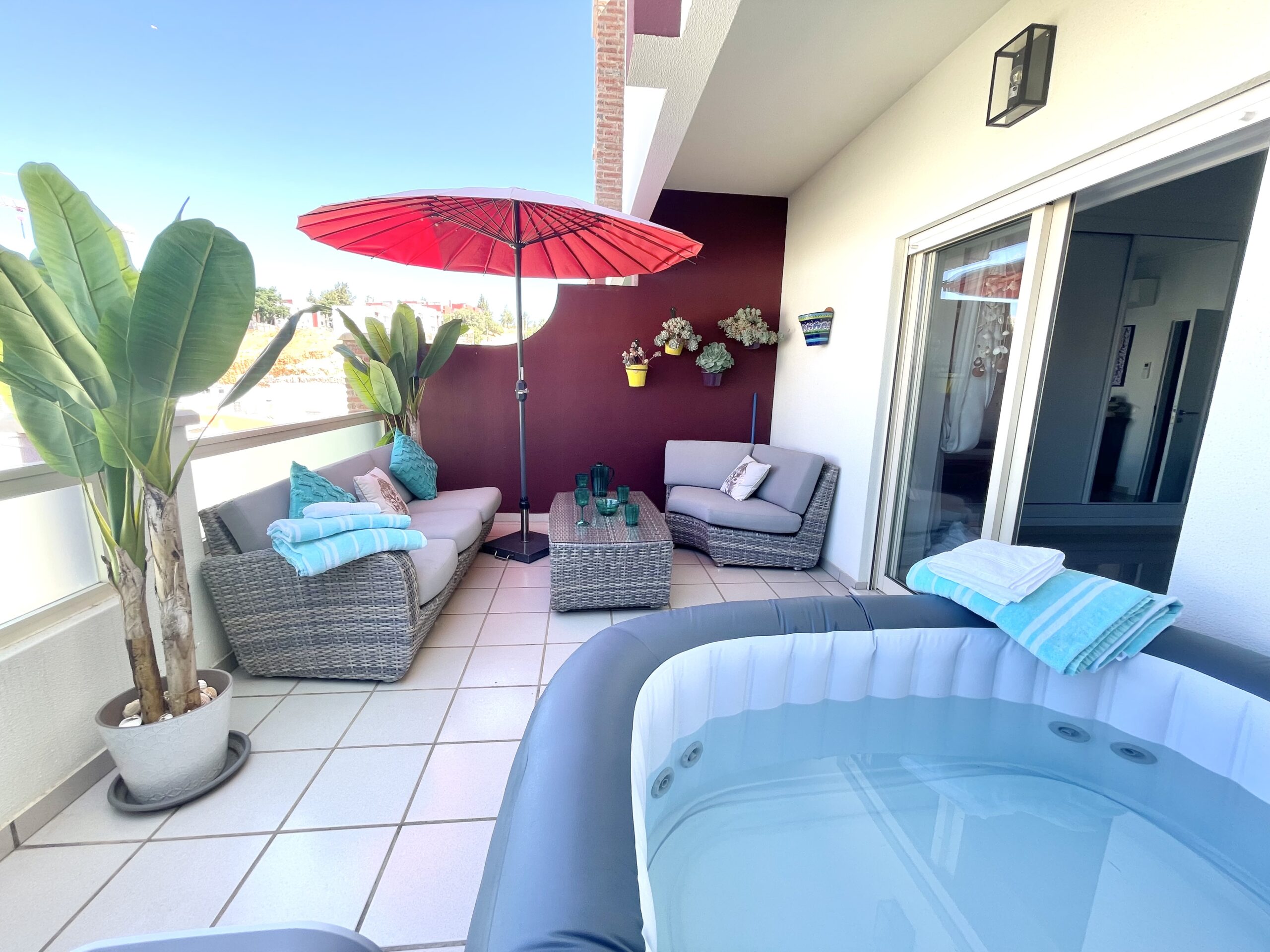 The apartment features two large south-facing terraces, including one with a jacuzzi, ideal for soaking up the sun, relaxing with a drink, or enjoying breathtaking Algarve sunsets. Inside, every detail is designed for comfort and modern living: air conditioning, central heating, electric shutters, double-glazed windows, alarm system, built-in wardrobes, and a separate laundry room with washer and dryer.